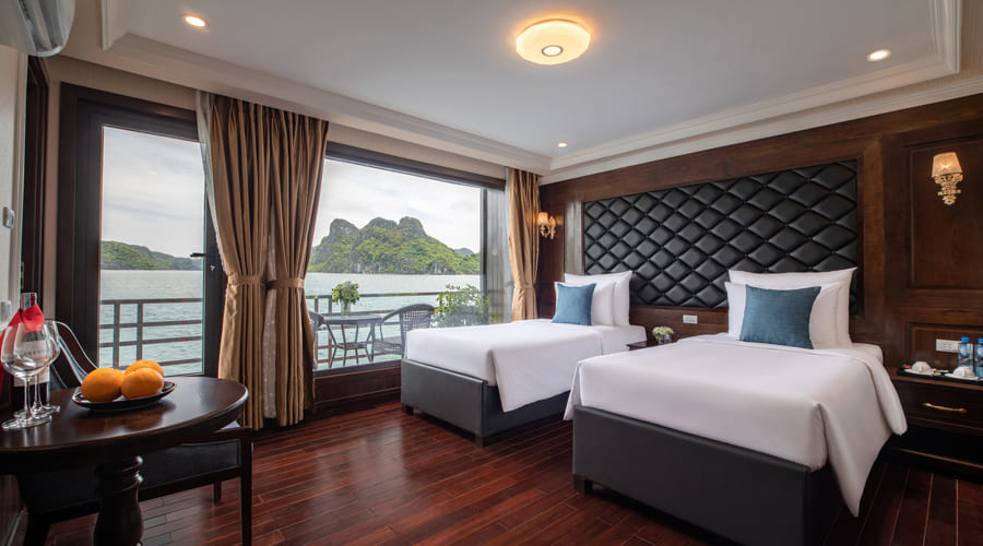 - Cabin information: Located on first & second floor of the cruise, all cabins have balcony. 30m2 for 3 people or 45m2 for 4 people